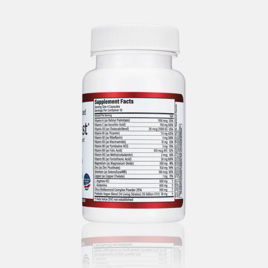 - GLUTAMINEA: Natural amino acid extensively studied for wound healing. Imperative for immune system support during recovery.