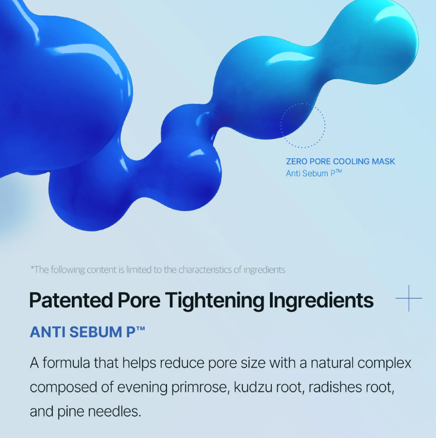 Medicube Zero Pore Cooling Mask is an effective and powerful pore care mask that targets pores with cooling and tightening effects. When body temperature increases, there is increased pore size and sebum production which is why it is important to cool the skin. By instantly cooling the skin and coupling with patented pore ingredients, this mask targets pore size, volume and quantity with visible results within one use.
